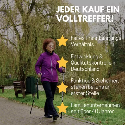 - Flexibel anpassbar: Teleskop-Funktion mit stufenloser Einstellung von 84–140 cm für optimale Stocklänge in jeder Situation.