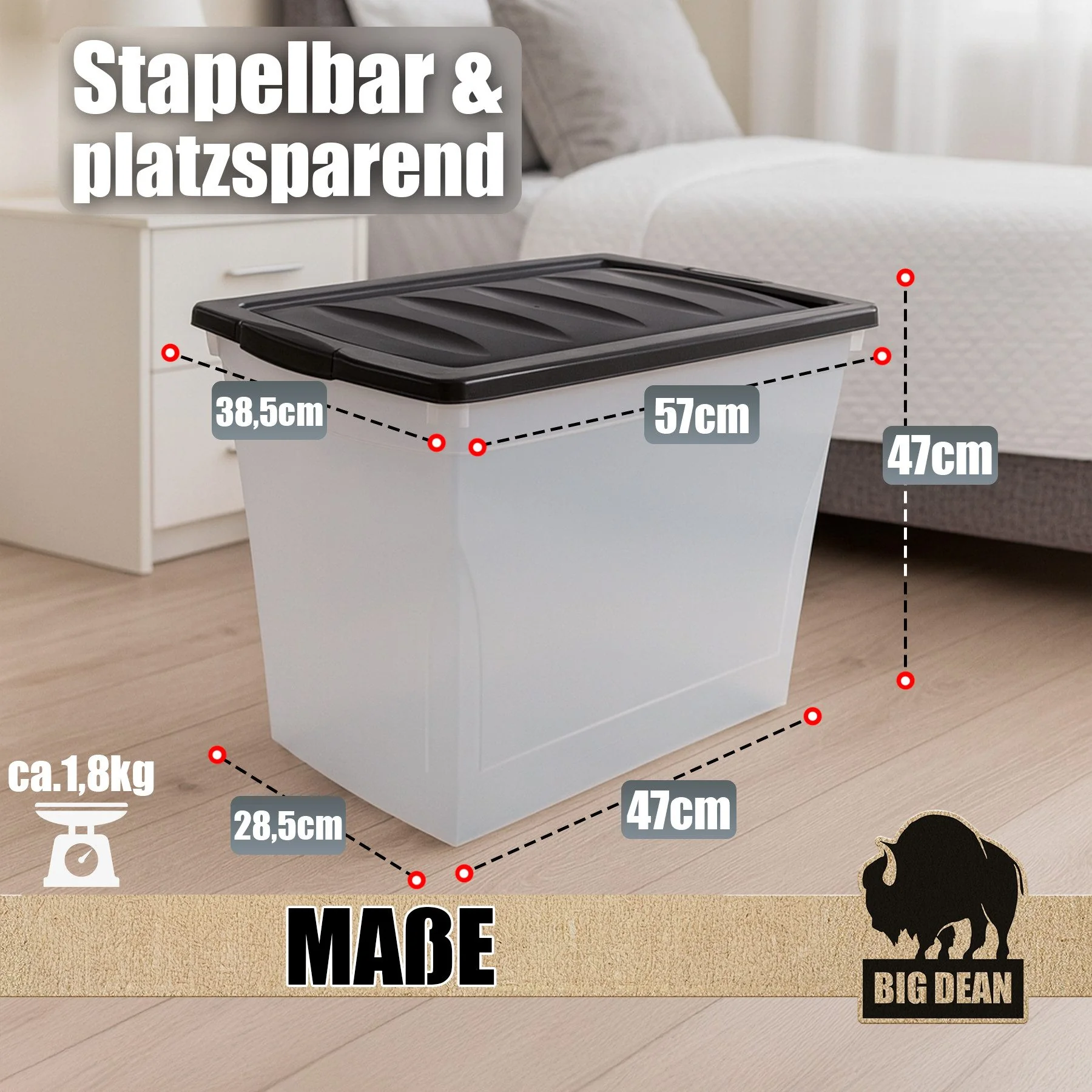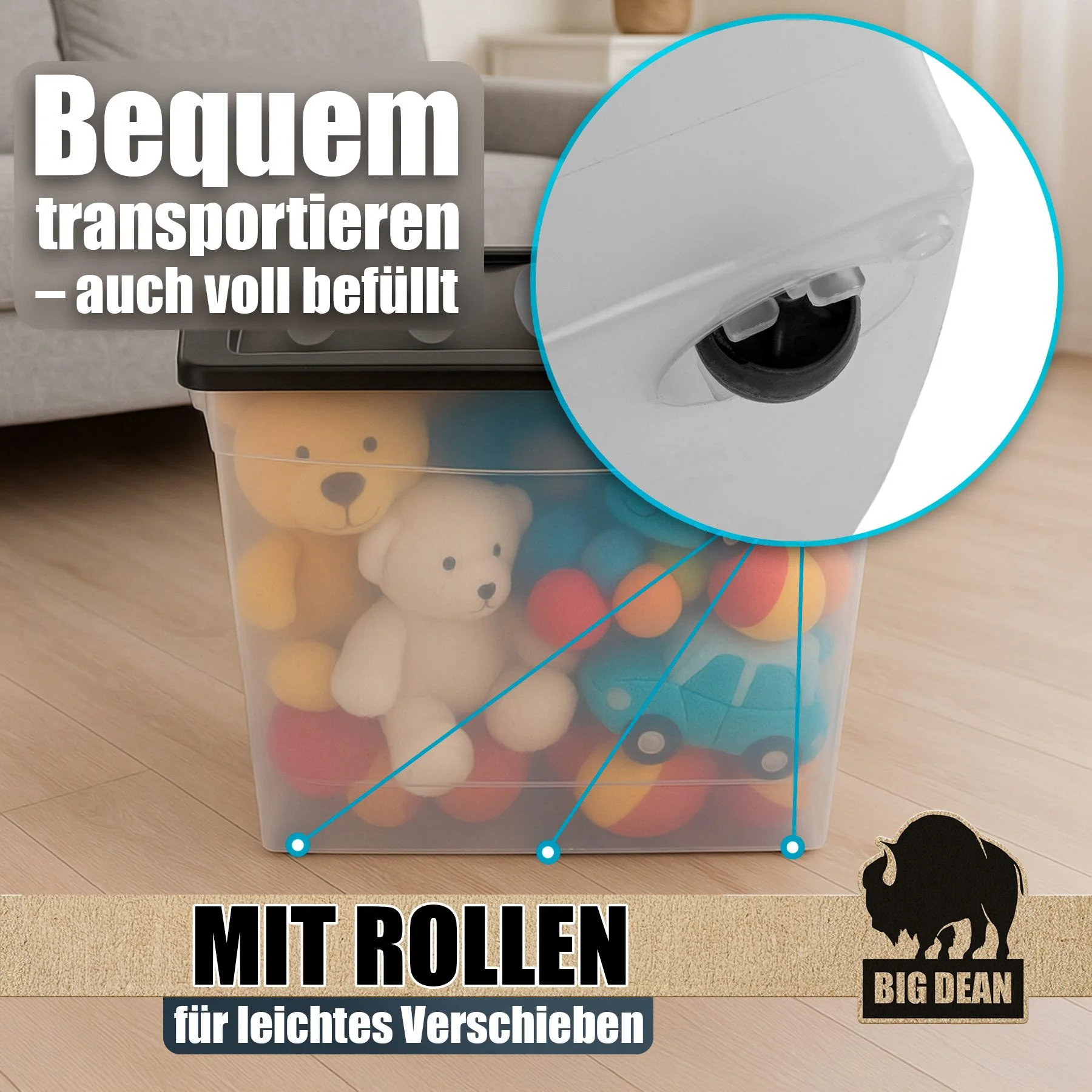 BIGDEAN Aufbewahrungsbox 80 L mit Deckel Rollen stapelbar groß