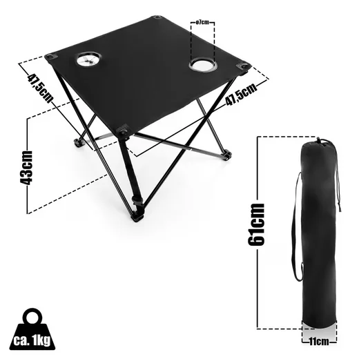Der BigDean Campingtisch vereint ultraleichtes Gewicht mit praktischem, faltbarem Design – ideal für Camping, Festivals und Angeln. Zwei integrierte Getränkehalter und eine robuste Tischfläche aus pflegeleichtem Oxford-Gewebe sorgen für Ordnung und verlässliche Ablage im Outdoor-Einsatz. Dank werkzeuglosem Aufbau und kompaktem Packmaß ist der tragbare Tisch in Sekunden einsatzbereit und genauso schnell wieder verstaut.