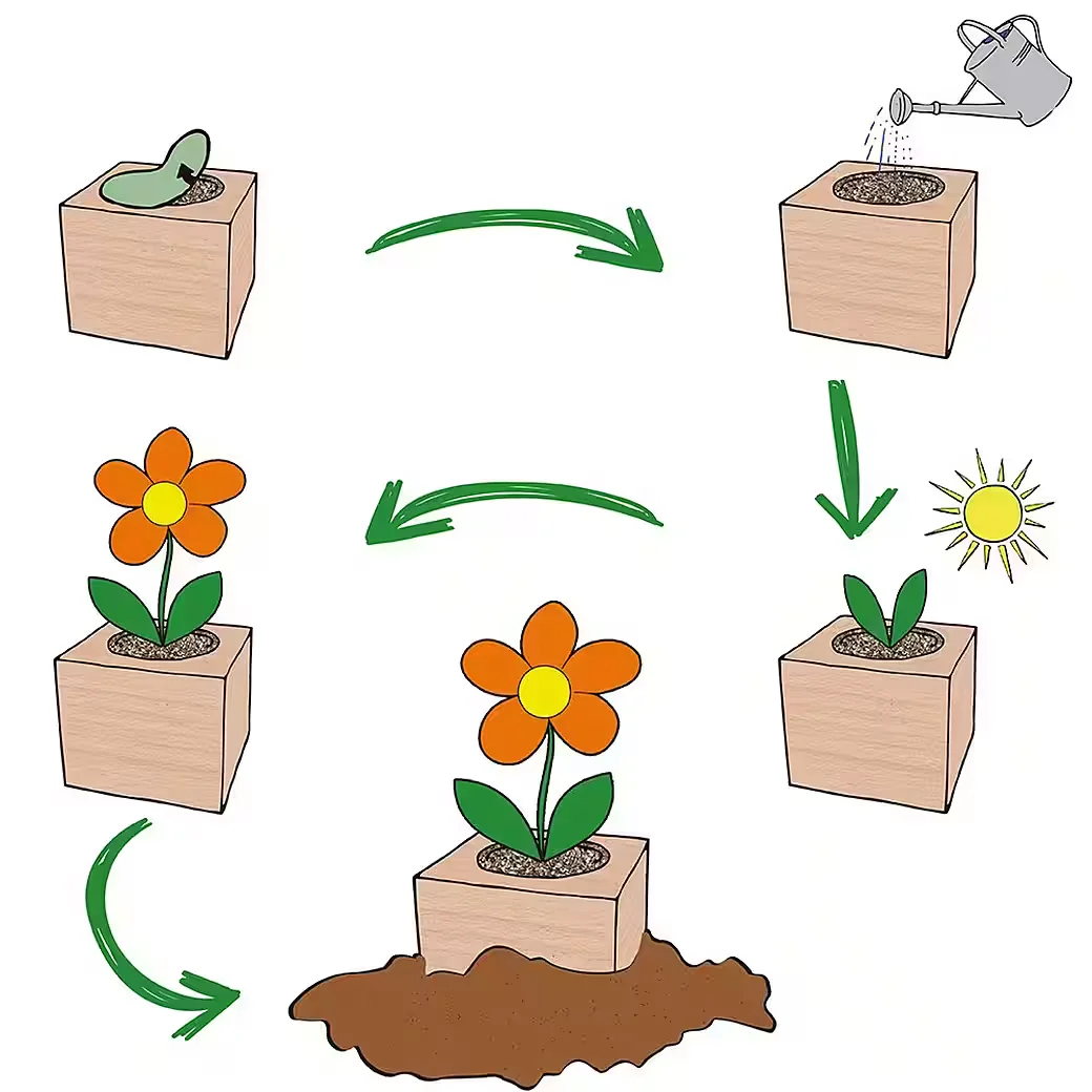 - Set-Inhalt: natürlicher Holzwürfel mit Lasergravur, Pflanzensamen, biologisch abbaubarer Pflanzbecher, Nährgranulat, Pflanzanleitung