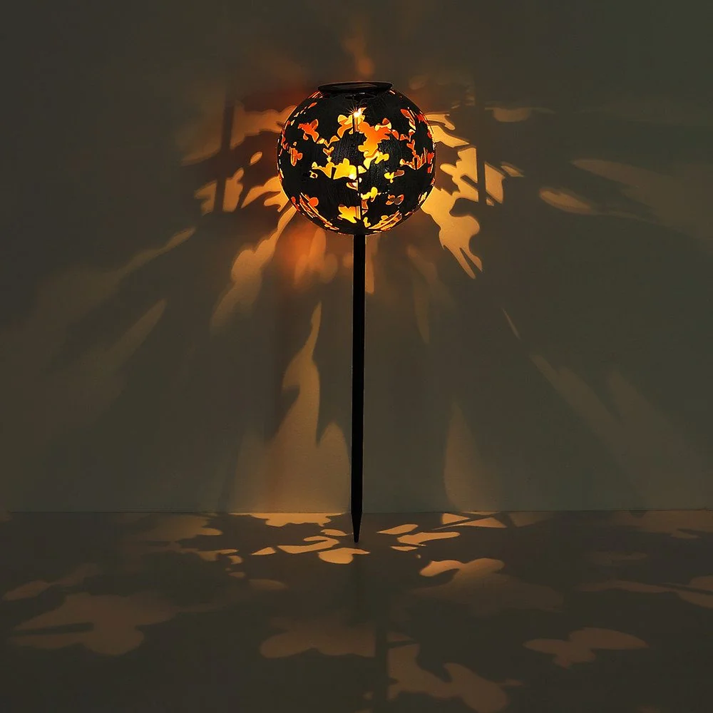 - Kugelförmiges Design mit Ahornblatt-Muster für akzentuierte Beleuchtung in Beeten und im Garten.