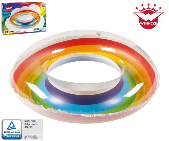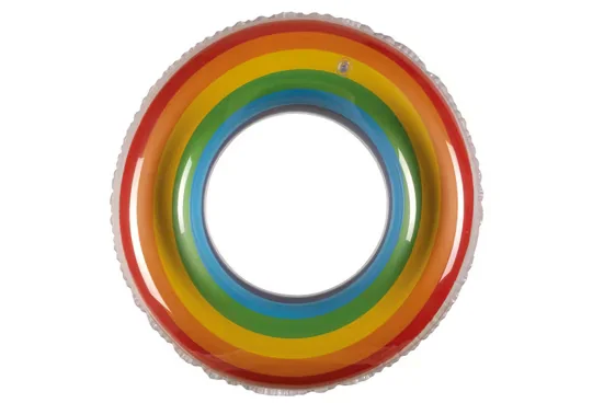 Dieser mehrfarbige Schwimmring verbindet klare Abmessungen mit einem transparenten-regenbunten Look. Er eignet sich für entspannte Wasseraktivitäten und punktet durch seine kompakte, aufgeblasene Größe sowie die gut erkennbare Rainbow-Gestaltung. Ideal, wenn ein farbenfrohes Design und übersichtliche Maße im Vordergrund stehen.