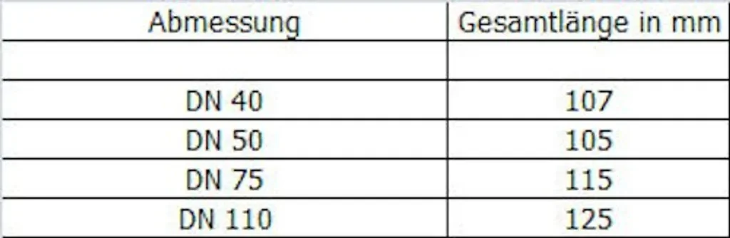 | Lieferumfang | HTsafe Doppelmuffe DN40 mit beidseitiger Steckmuffe und vormontierter Lippendichtung |