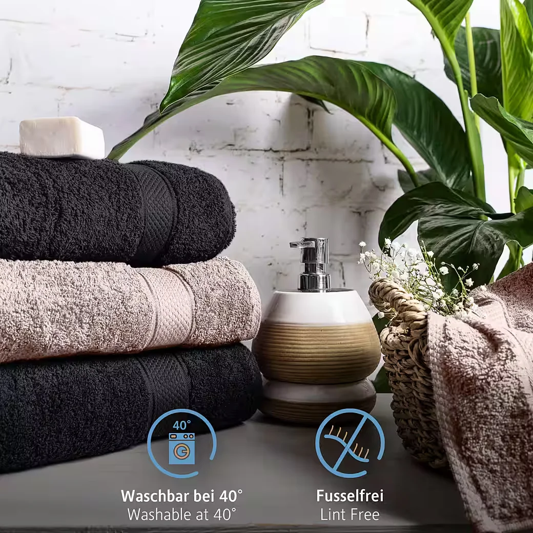Dieses Handtuch-Set adressiert den täglichen Einsatz im Bad: vom schnellen Abtrocknen nach dem Duschen bis zur regelmäßigen Nutzung in Haushalt oder Gästebad. Die Kombination aus hoher Saugfähigkeit, dichter Baumwolle und pflegeleichten Eigenschaften macht die Tücher zu einer praktischen Wahl für eine zuverlässige Badtextil-Grundausstattung.