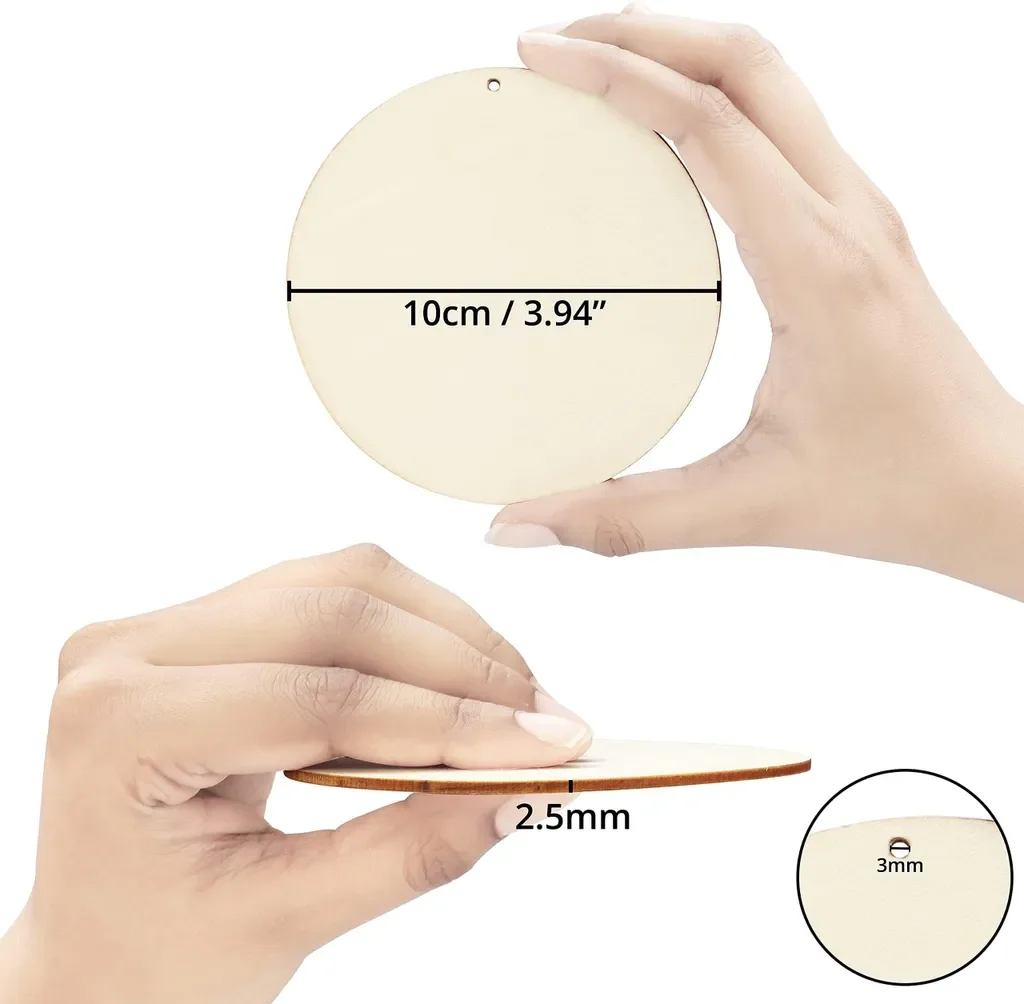 Kurtzy 50x Holzscheiben 10 cm mit Loch, rund 2,5 mm Basteln