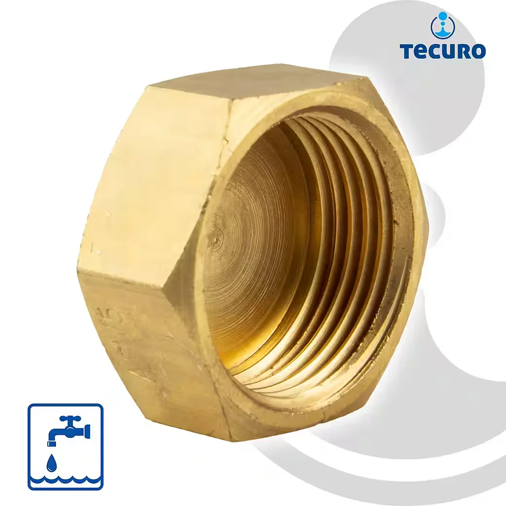 Produktinformationen "TECURO Messing Gewindekappe Rp Innengewinde 3 Achtel Zoll Sechskant"