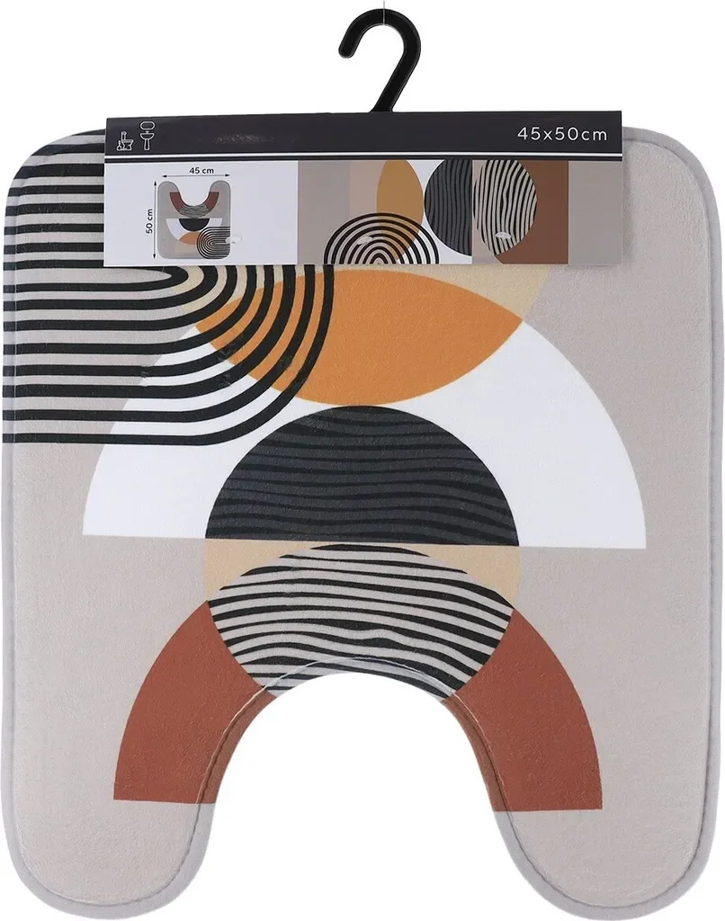 Dieser WC‑Vorleger aus der Kollektion Trendy verbindet funktionale Eigenschaften mit markanter Optik. Die Badezimmermatte aus 100% Polyester bietet eine rutschfeste Unterseite für mehr Sicherheit auf feuchten Böden und nimmt Feuchtigkeit nach dem Duschen zuverlässig auf. Mit schnelltrocknender, knitterfreier Oberfläche bleibt die rechteckige Matte formstabil und sorgt zugleich für ein angenehmes Trittgefühl auf kalten Fliesen. Das kühne, geometrische Design in kontrastreichen Farben wie Schwarz, Beige und Orange setzt einen modernen Akzent – inspiriert von Retro und Moderne und passend zu klassischen wie zeitgemäßen Badstilen.