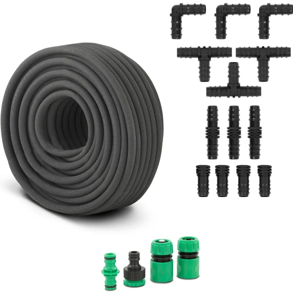 hillvert Tropfschlauch 50 m Gartenbewässerung mit Hahnstück, Tülle